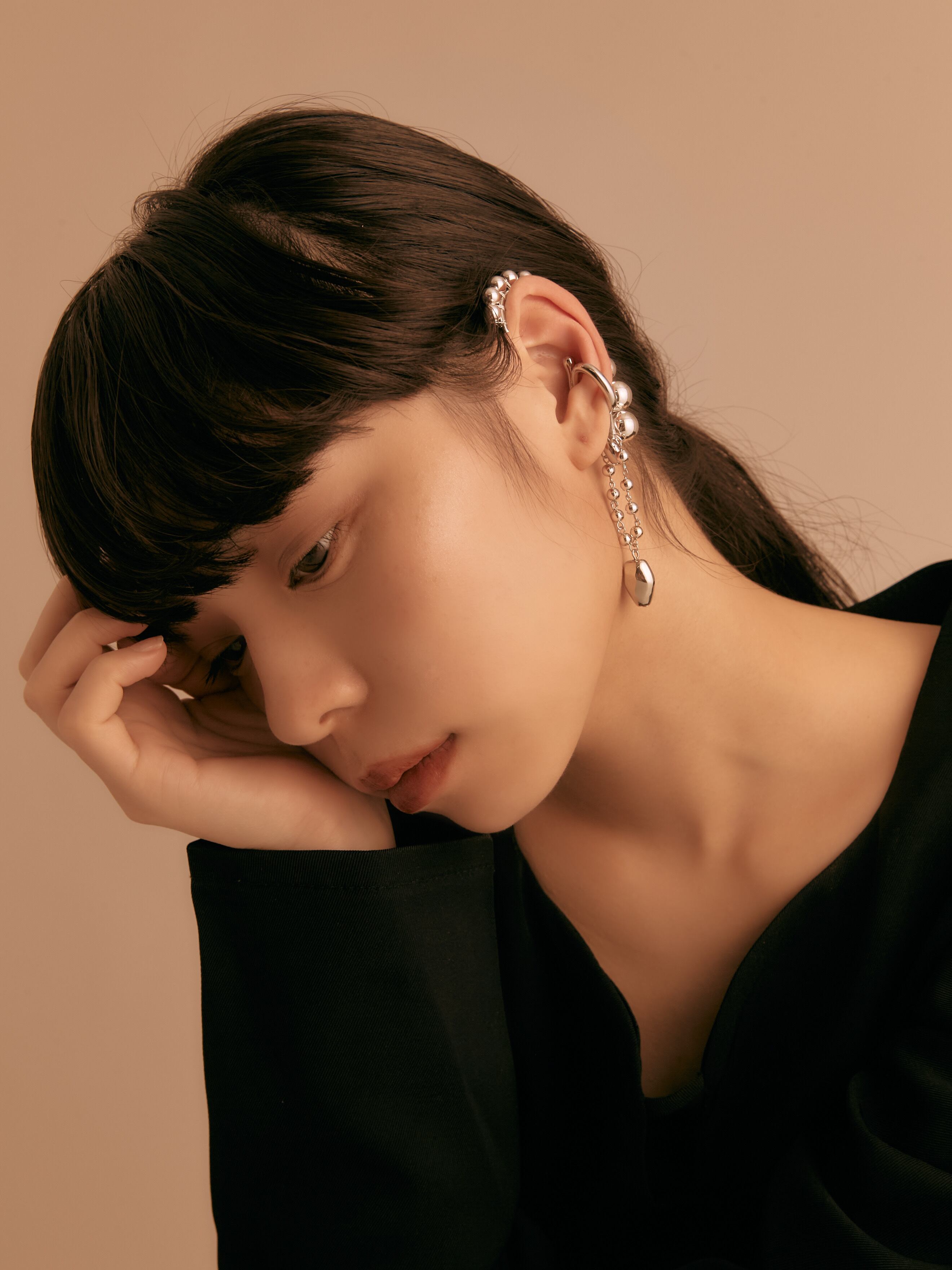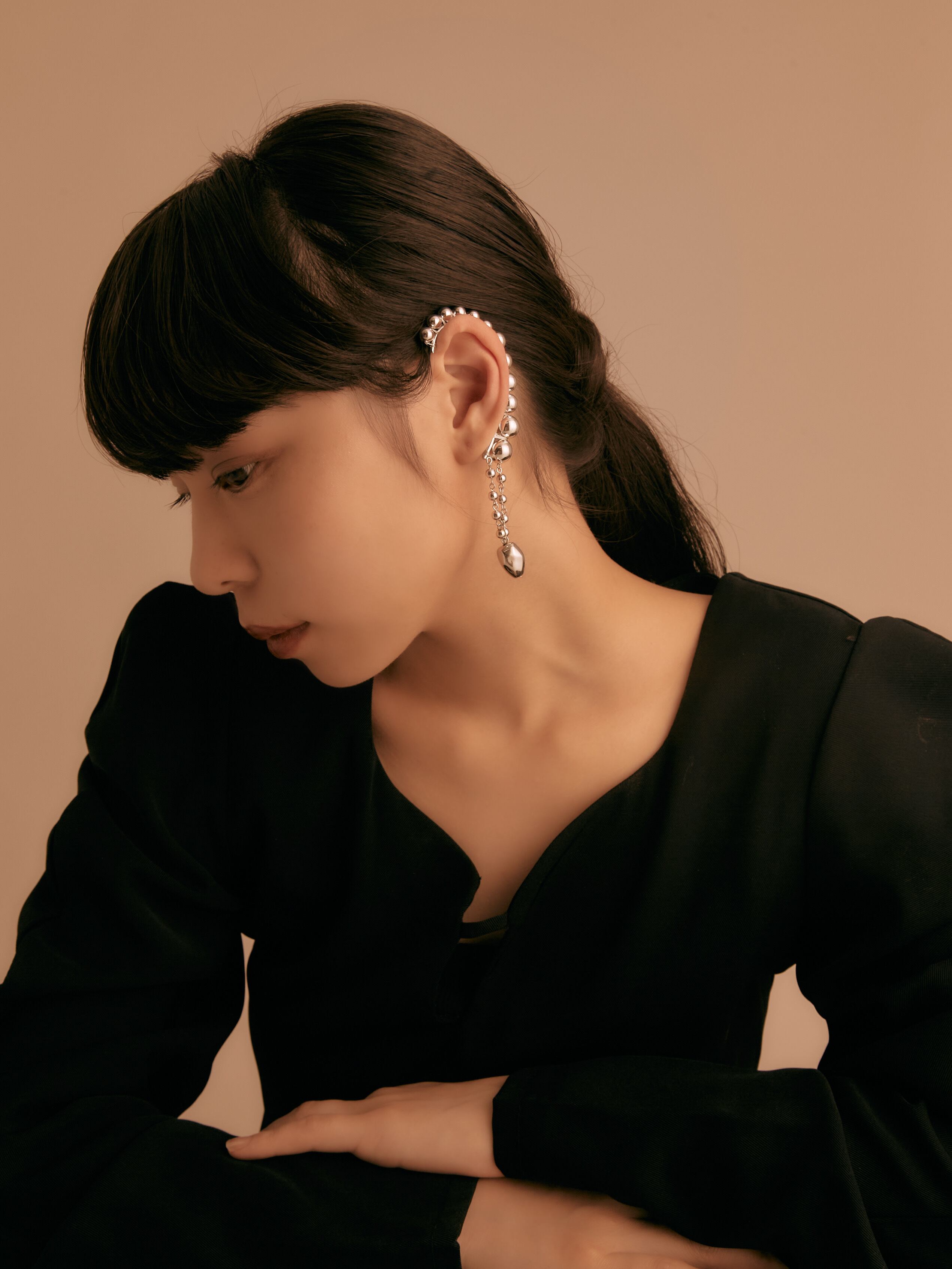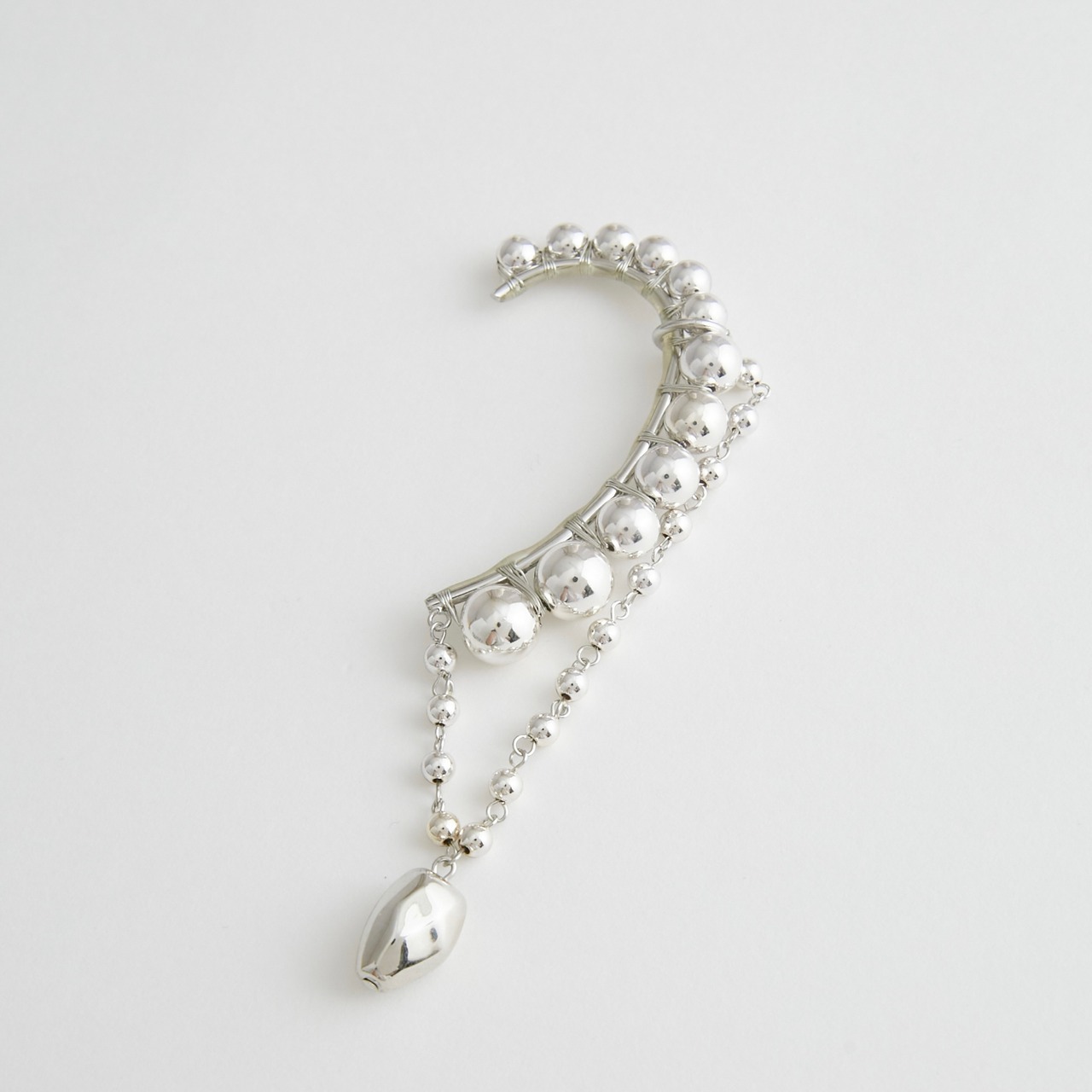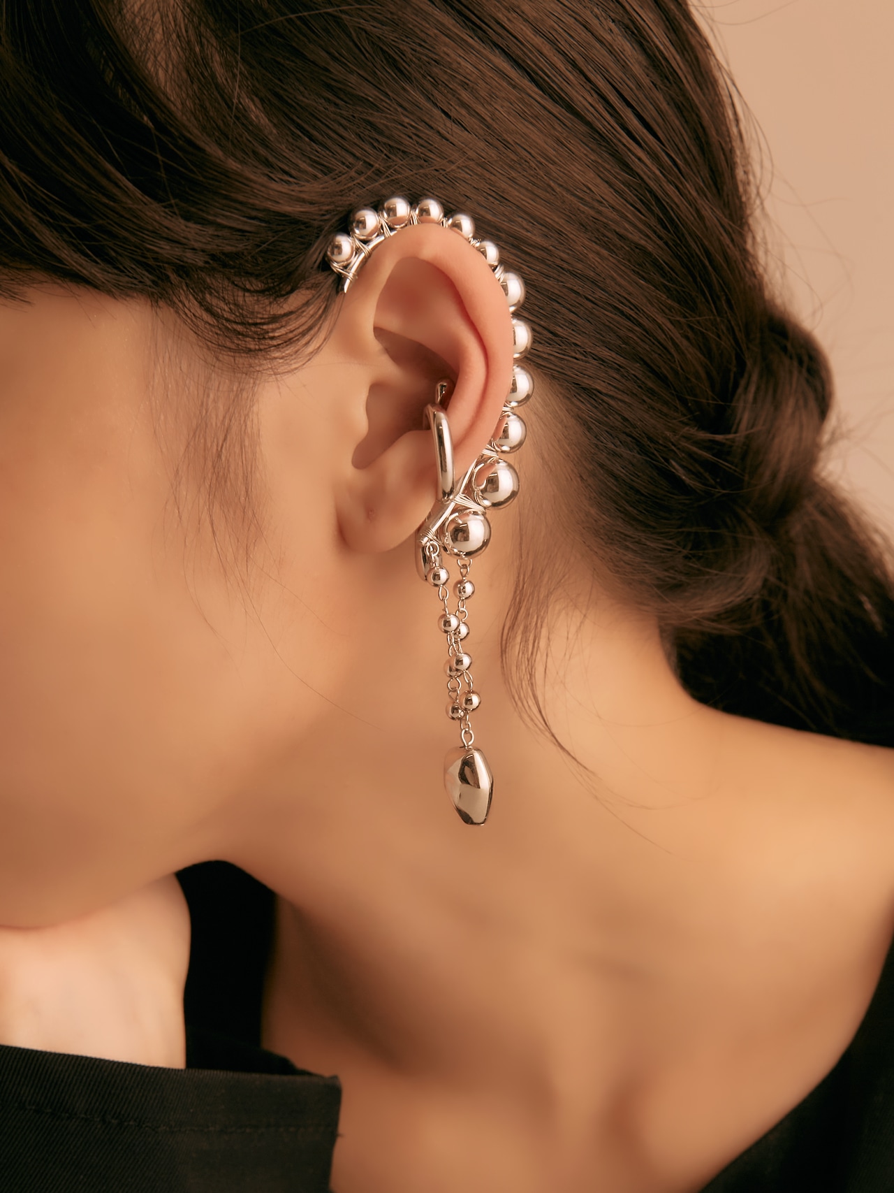 耳飾りとネックレスが合わさったようなデザインは輝きを与えてくれ、ゆらゆらと揺れるデザインがとても魅力的なアイテムです。